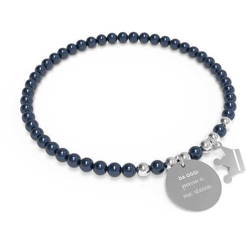 Bracciale Da Donna Di 10 Buoni Propositi By Annabiblo° Della Collezione Bon Bon. Bracciale Con Inciso Il Buon Proposito Da Oggi Penso A Me Stessa. Modello Realizzato In Acciaio Inossidabile Aisi 304, Nichel Free. Sfere 4Mm In Acciaio E Perle 4Mm In Vetro. Ciondoli: Medaglia In Acciaio Del Diametro Di 15Mm Con Inciso Il Buon Proposito E Sul Retro Il Marchio Annabiblo°. Ciondolo A Forma Dell'Icona Corrispondente. Bracciale Montato Su Elastico Della Lunghezza Di 17 Cm. Gioiello Di Colore Silver E Blu. La Referenza È B5101/Bl Questo bracciale verrà spedito con Scatola Originale 10 Buoni Propositi.