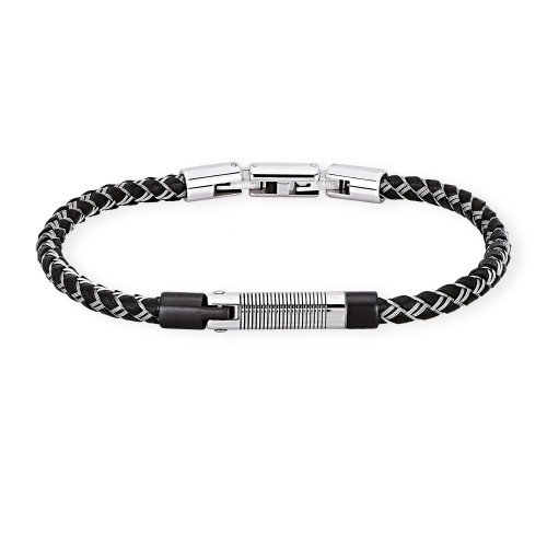 BRACCIALE IN ACCIAIO 316L, PVD NERO E PELLE