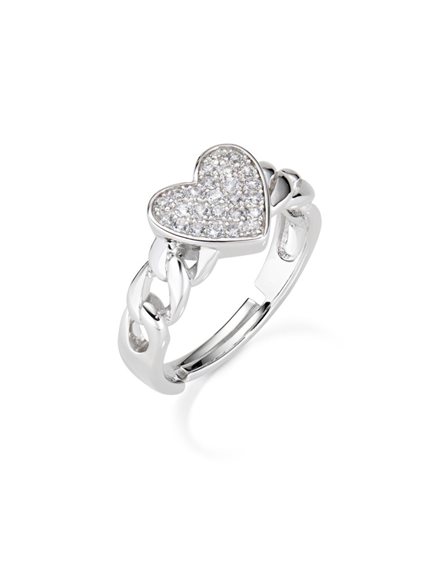 Anello regolabile Cuore con Catena - Anello in AG925 con zirconi bianchi - Rodio