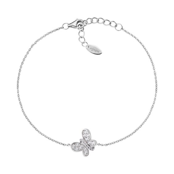 Bracciale in AG925 e zirconi bianchi - Rodio - Lunghezza 16+3cm - farfalla Ø 1cm