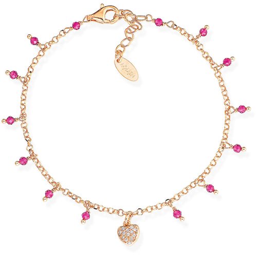 Bracciale Da Donna In Argento 925 Di Colore Rosè Con Cristalli E Zirconi. Lunghezza 16+3Cm
