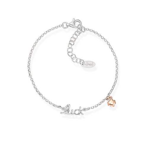 Bracciale in Argento 925 Rodio e Charm Rosè - Lunghezza 16+3cm