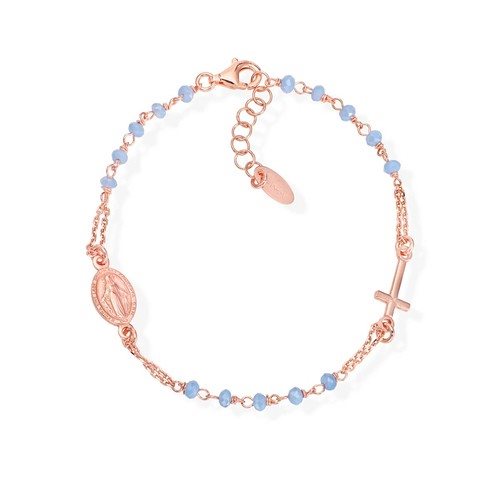Bracciale in argento rose' a Rosario con Cristalli Celesti di diametro mm 2,5 Collezione Rosari