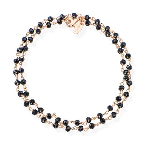 Bracciale Doppio Rosè e Cristalli Neri - Bracciale in Argento 925 e cristalli neri (Lunghezza 17+3cm - grani Ø 3mm)