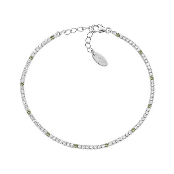 Argento con zirconi bianchi e verde oliva - Rodiato - zirconi Ø 1,5 mm - lungh. 17 + 3,5 cm