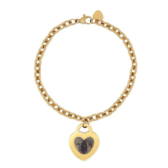 Bracciale Emotion Dorato con Cuore Pendente Black Il Bracciale Emotion Dorato con Cuore Pendente Black è realizzato in acciaio 316L con finitura PVD oro. È composto da una catena a maglie ovali di 19 cm con chiusura a moschettone e un ciondolo piatto a forma di cuore con impronta nera e smalto nero sul retro. Lunghezza del charm: 2,3 cm.