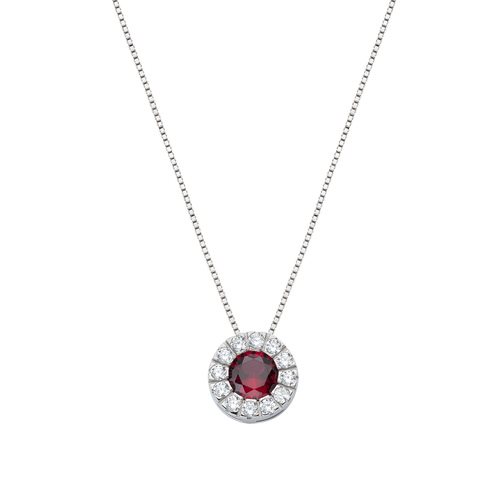 COLLANA ARGENTO AMEN CON PENDENTE CENTRALE CON ZIRCONE ROSSO E BIANCHI MIS 40 CM REGOLABILE