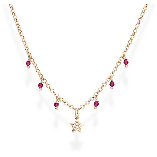 Collana Stella Zirconata e Pepite Rosa - Collana In Argento 925 Di Colore Rosè Con Cristalli E Zirconi. Lunghezza 42+3Cm