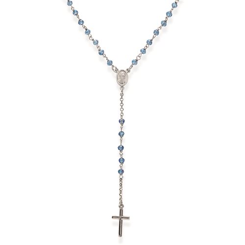 Collana Da Donna Di Amen Della Collezione Rosari. Rosario Classico In Argento 925 Rodiato E Cristalli Cangianti Azzurro Cielo. Gioiello Della Lunghezza Di 50+2Cm. La Referenza È Crobc4