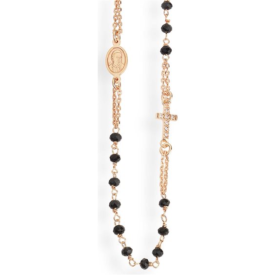 Gioiello Amen, Collezione: Rosarium, Collana Rosario Giroc Pavè Rosè e Onice, crocetta con zirconi. confezione originale