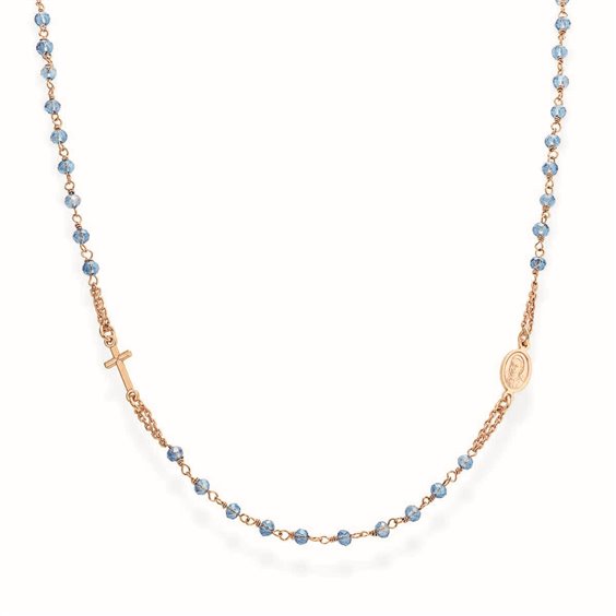 Rosario girocollo e cristalli cangianti azzurro cielo AG925 Rosè Lenght 50+2cm Articolo corredato da shopper, scatola e garanzia