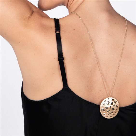 Collana lunga cm.70 con pendente grande lucido e spazzolato in AG 925‰ placcato oro giallo 23 ct. argento 925‰ placcatura in oro giallo 23 carati rivestimento con speciale trattamento che protegge dalla naturale ossidazione del metallo orgogliosamente fatto a mano in Italia placcature rigorosamente senza alcun rilascio di nichel e cadmio comfort fit