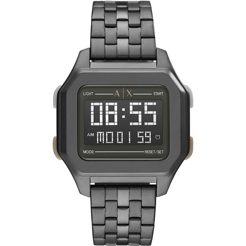 Marca Armani Exchange Nome modello AX2951 Codice identificativo AX2951 Anno 2020 Forma Piazza Tipo di vetro Vetro minerale Tipo di quadrante Digitale Chiusura Chiusura di sicurezza pieghevole con pulsante Materiale della cassa Acciaio inossidabile Diametro della cassa 44 mm Spessore della cassa 10 mm Materiale del cinturino Acciaio inossidabile Larghezza cinturino 22 mm Colore cinturino Grigio Colore quadrante Nero Tipo di calendario Data Caratteristiche speciali Calendario Tipo di meccanismo Digitale