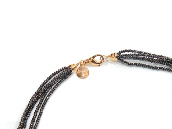 Collana 7 fili con sfere di ematite sfaccettata cm 87 con chiusura placcata oro rosa 18 kt . Certificato d'autenticita' Bronzallure