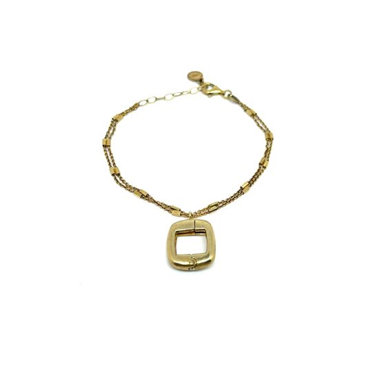 Bracciale in argento rodiato oro giallo con doppio filo e ciondolo su cui è possibile inserire un simbolo o l'iniziale desiderata.