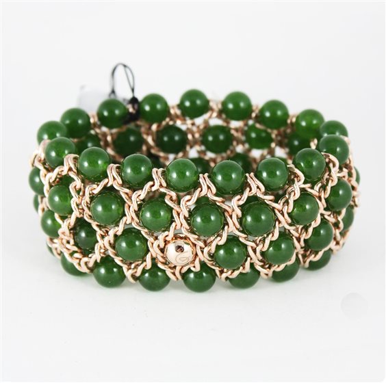 Bracciale con elementi in argento 925% con galvanica in oro rosa. Bracciale con agata verde.