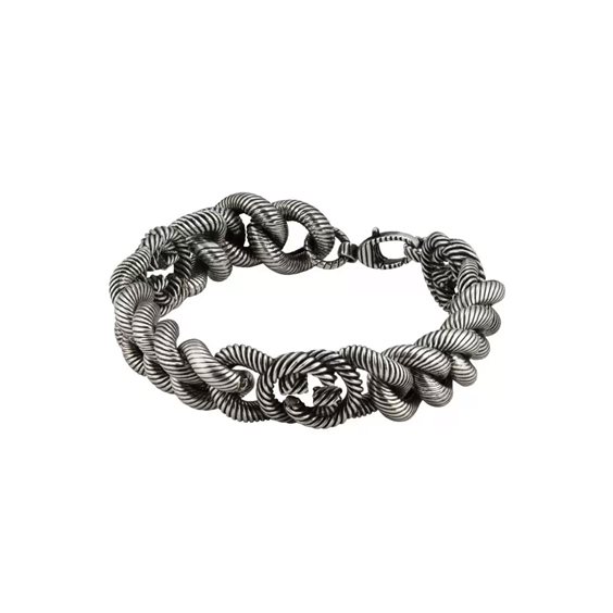 Gucci - Bracciale INTERLOCKING G GOURMETTE SMALL AGED SILVER