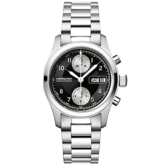 orologio hamilton da uomo, h71566133, collezione khaki field auto, novità , movimento automatico, calibro h-h21, solo cronografo, materiale cassa acciaio da 42 mm , cinturino in acciaio , quadrante nero , vetro zaffiro, cinturino 22mm, impermeabile a 100metri Cassa Acciaio, Diametro Cassa 42 mm, Bracciale Acciaio,