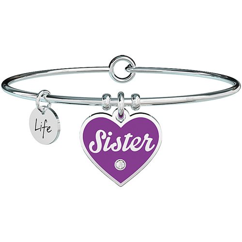 Bracciale Da Donna Di Kidult Della Collezione Family. 'Sister'. Bangle In Acciaio Color Argento Con Ciondolo A Cuore. Smalto Colorato E Cristallo Sul Ciondolo. Chiusura Tonda. Misura Unica: Diametro 6 Cm. Materiale: Acciaio 316L. Smalto E Cristallo. Designed By Kidult In Italy. La Scritta Presente Nel Bracciale È ' Sei La Mia Sorella Del Cuore. Se Cadi, Potrei Mettermi A Ridere. Ma Subito Dopo Ti Prenderò In Braccio.'.