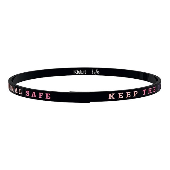 Bracciale kidult rigido in acciaio ipoallergenico smalto nero incisione colorata. " keep the ocean blu, the planet green and the animal safe."