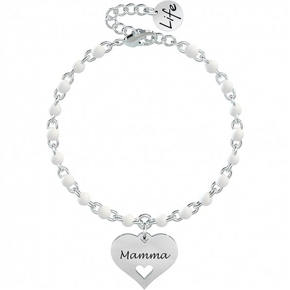 Bracciale Da Donna Di Kidult Della Collezione Family Per La Festa Della Mamma. Bracciale In Acciaio Con Ciondolo A Cuore E Catena Rolò Con Inserimenti In Smalto Bianco. Incisione Smaltata Sul Ciondolo E Inserimenti In Smalto Sulla Catena. Chiusura Con Moschettone. Bracciale Di Misura Regolabile, Lunghezza Da 16 Cm A 19 Cm. Gioiello Realizzato In Acciaio 316L, Smalto