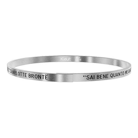 Sai bene quanto me qual è il valore dell'affetto di una sorella: non c'è nulla di simile in questo mondo. - Charlotte Brontë - Bangle sottile in acciaio satinato. • Incisione smaltata • Chiusura a scomparsa • Misura unica, diametro 6 cm • Materiale: Acciaio 316L