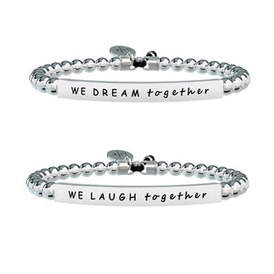 Bracciali Kidult in acciaio a molla incisi, Collezione Life Love, 731324. Adatti a polsi di circonferenza fino a 20 cm. 'Sognare insieme, ridere insieme. Io e te, amiche per la vita, amiche per la pelle.' ll prodotto viene spedito con Scatola Originale, Certificato di Autenticità e Garanzia Ufficiale 24 me