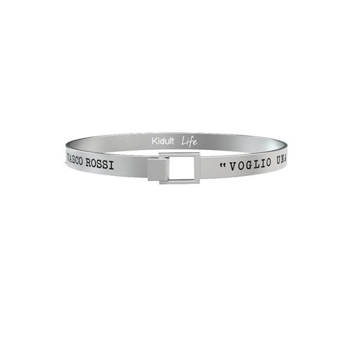 Bracciale in acciaio da Uomo di Kidult della collezione Free Time, Taglia L, con frase: 'Voglio una vita spericolata… la voglio piena di guai.' Vasco Rossi. La frase è presente anche all'interno della confezione del bracciale.