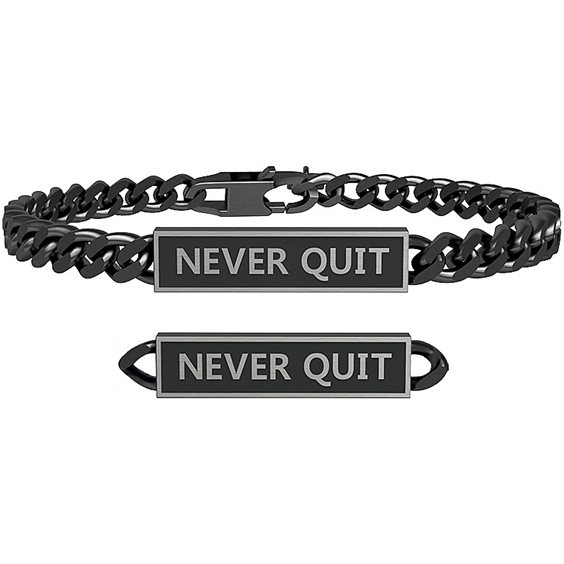 Bracciale Da Uomo Di Kidult Della Collezione Philosophy. Bracciale In Acciaio Satinato Color Nero Con Catena Groumette E Piastra Rettangolare Di Colore Nero... La Frase Incisa È: Mai Arrendersi, Anche Quando Tutto Sembra Perduto. Se C'È Un Momento In Cui Tenere Duro, È Proprio Quando Tutti Ti Invitano A Mollare La Presa.. Materiale: Acciaio 316L Con Pvd Nero. Gioiello Con Chiusura Con Moschettone. Misura Unica, Lunghezza 21 Cm. La Referenza È 731804 Questo bracciale verrà spedito con Scatola Originale Kidult