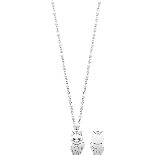 Collana Da Donna Di Kidult Della Collezione Animal Planet. Collana Corta In Acciaio Con Ciondolo A Gatto E Catena Rolò Con Inserimenti In Smalto Bianco. Incisione Smaltata E Cristallo Sul Ciondolo; Inserimenti In Smalto Sulla Catena. Misura Unica, Lunghezza 44 Cm. Materiale: Acciaio 316L, Smalto, Cristallo. Gioiello Con Frase: Hai Bisogno Di Prenderti Cura Di Qualcuno, Giocare Insieme A Lui, Stringerlo Forte E Dargli Tante Carezze? Beh, Allora Hai Bisogno Di Un Gatto!.