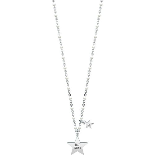 Collana Da Donna Di Kidult Della Collezione Love. Collana Corta In Acciaio Con Ciondoli A Stella E Catena Rolò Con Inserimenti In Smalto Bianco. Incisione Smaltata Sul Ciondolo, Cristallo Sul Ciondolo Piccolo E Inserimenti In Smalto Sulla Catena. Misura Unica, Lunghezza 44 Cm. Materiale: Acciaio 316L, Smalto, Cristallo. Gioiello Con Frase: Possiamo Cambiare Città, Vestiti, Abitudini. Può Cambiare L'Amore, Il Corso Delle Stagioni E Anche Il Ritmo Dell'Universo. Può Succedere Di Tutto... Ma Noi Due Resteremo Amiche Forever!