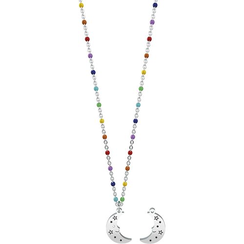 Collana Da Donna Di Kidult Della Collezione Symbols. Collana Corta In Acciaio Con Ciondolo A Luna E Catena Rolò Con Inserimenti dipallini In Smalto Multicolore. Incisione Smaltata E Cristallo Sul Ciondolo E Inserimenti In Smalto Sulla Catena. Misura Unica, Lunghezza 44 Cm. Materiale: Acciaio 316L, Smalto, Cristallo. Gioiello Con Frase: 'Fai Della Tua Vita Un Sogno E Di Un Sogno Una Realtà.'