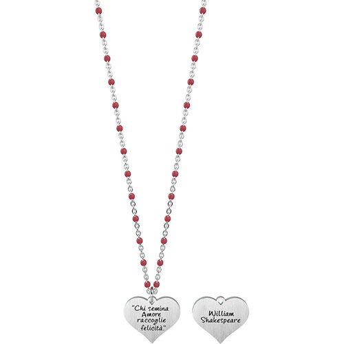 Collana Da Donna Di Kidult Della Collezione Love. Collana Corta In Acciaio Con Ciondolo A Cuore E Catena Rolò Con Inserimenti di palline In Smalto Rosso. Incisione Smaltata Sul Ciondolo E Inserimenti In Smalto Sulla Catena. Misura Unica, Lunghezza 44 Cm. Materiale: Acciaio 316L, Smalto. Gioiello Con Frase: 'Chi Semina Amore Raccoglie Felicità.' - W. Shakespeare
