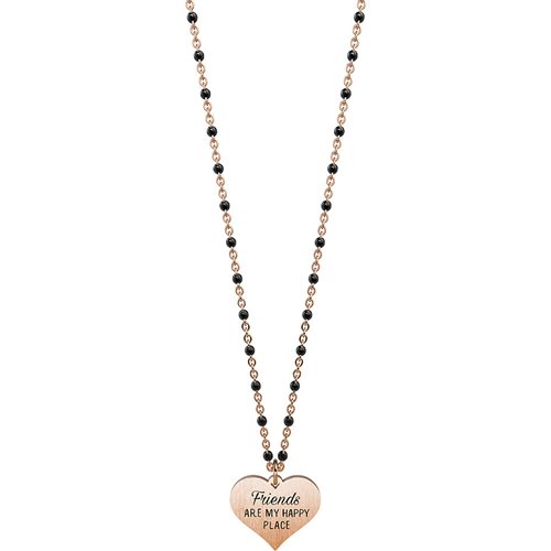 Collana Da Donna Di Kidult Della Collezione Love. Collana Corta In Acciaio Color Oro Rosa Con Ciondolo A Cuore E Catena Rolò Con Inserimenti In Smalto Nero. Incisione Smaltata Sul Ciondolo E Inserimenti In Smalto Sulla Catena. Misura Unica, Lunghezza 44 Cm. Materiale: Acciaio 316L Con Pvd Oro Rosa, Smalto. Gioiello Con Frase: Esiste Un Luogo Felice Dove Qualsiasi Tristezza Svanisce E Ti Senti Amata Per Quella Che Sei. Quel Luogo È... Ovunque Ci Sono I Tuoi Amici.