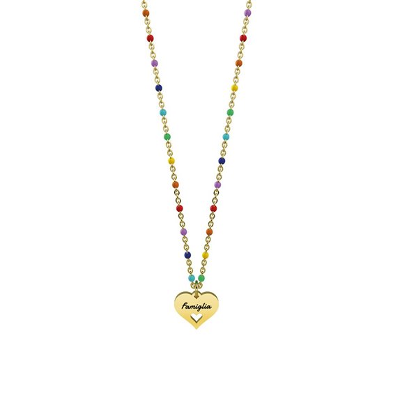 Collana girocollo Kidult Cuore | Famiglia in acciaio. Questa collana fa parte della collezione Family. Collana in acciaio 316L ipoallergenico Catena rolò con perline smaltate Lunghezza unica collana 44 cm con chiusura a moschettone Lasciati trasportare dai colori, dalle frasi e dai simpatici ciondoli dei gioielli Kidult e rivivi le emozioni del passato o lasciati ispirare e realizza i tuoi sogni. Le collane Kidult nascono con l’intenzione di raccontare una storia: la tua. “Famiglia è chi ti fa sentire a casa, chi ti abbraccia quando ne hai bisogno, chi ti ascolta senza giudicare. Famiglia è stare insieme senza eccezioni.”