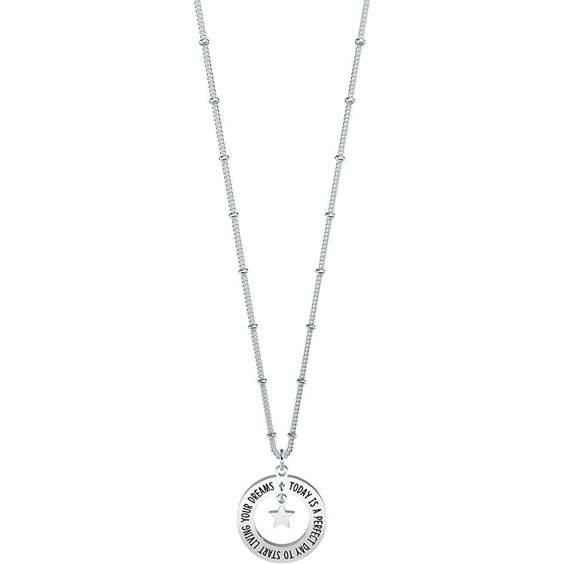 Collana Da Donna Di Kidult Della Collezione Philosophy. Collana Corta In Acciaio Con Ciondolo Tondo Con Stellina E Catena Groumette Con Anellini. Incisione Smaltata Sul Ciondolo. Misura Unica, Lunghezza 44 Cm. Materiale: Acciaio 316L. Gioiello Con Frase: Today Is A Perfect Day To Start Living Your Dreams.