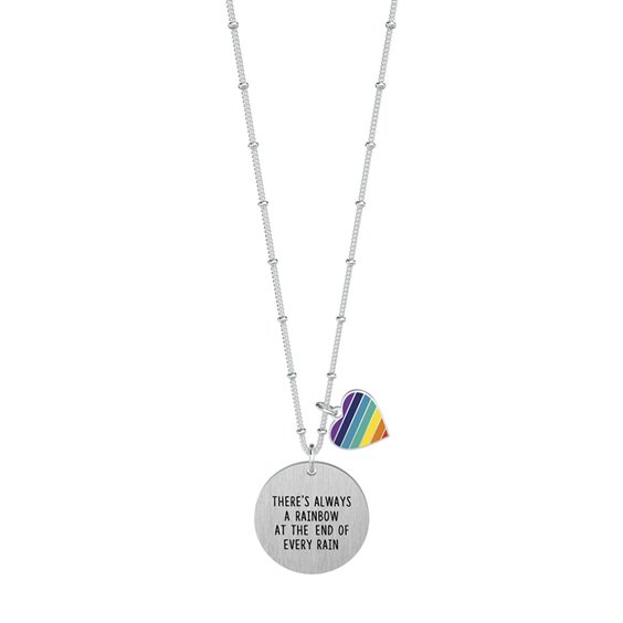 Collana lunga Kidult There’s always a rainbow at the end of every rain in acciaio. Questa collana fa parte della collezione Philosophy. Collana in acciaio 316L ipoallergenico Catena grumetta con anellini Lunghezza unica collana 80 cm con chiusura a moschettone Lasciati trasportare dai colori, dalle frasi e dai simpatici ciondoli dei gioielli Kidult e rivivi le emozioni del passato o lasciati ispirare e realizza i tuoi sogni. Le collane Kidult nascono con l’intenzione di raccontare una storia: la tua. “Non temere la pioggia, è solo un momento… ricorda che dopo un temporale nasce sempre l’arcobaleno!”