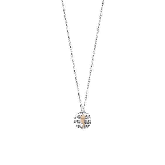 Collana Kidult in acciaio 316L con ciondolo con cornetto in rilievo color oro rosa e cristallo e catena rolò. Lunghezza 44cm ,diametro del ciondolo 17mm
