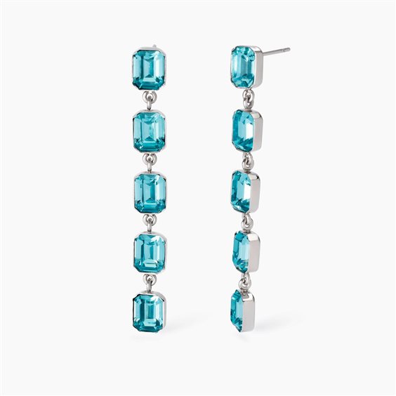 Orecchini in acciaio 316L, lunghezza totale orecchino 6 cm, con cristalli ottagonali azzurri. Dimensioni: cristalli 6x8 mm