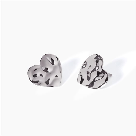 Orecchini a lobo a forma di cuore effetto martellato. • Dimensione cuore: 17 x 16 mm • Materiale: Acciaio 316L