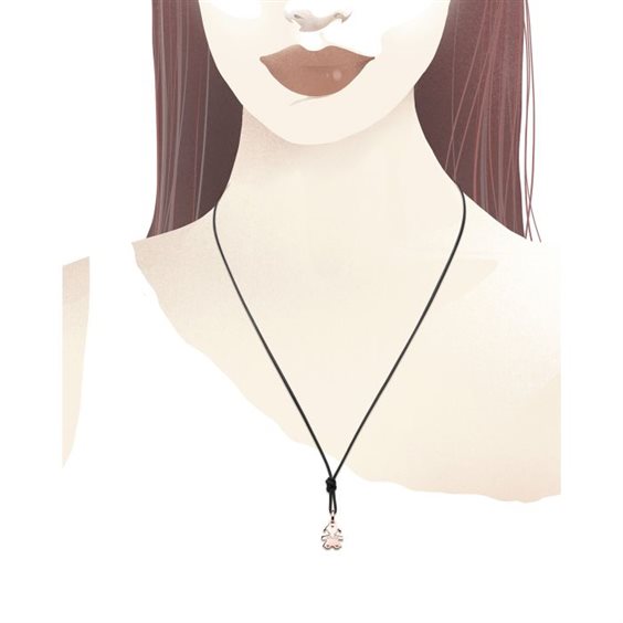Ciondolo bimba in oro rosa corredato di cordino. Altezza 1 cm. Larghezza 0,9 cm.