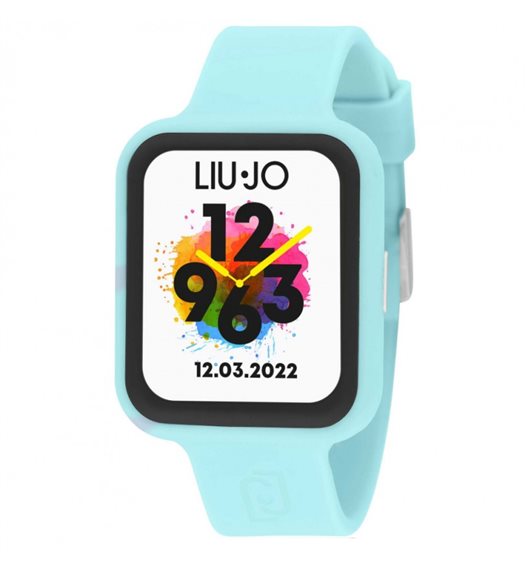 Liu Jo smartwatch SWLJ133 Orologio smartwatch compatibile tramite app con Android 5 o + e iOS 9 o +. Cassa squadrata siliconata dalle dimensioni di 37,5 mm x 44 mm. Quadrante con display da 1,72'' a colori completamente touch. Illuminazione automatica tramite rotazione del polso. Sfondo personalizzabile da watch face o fotocamera del telefono. Cinturino in silicone turchese; chiusura a bottone. Classificazione d'impermeabilità IP67. Connettività Bluetooth fino a 10 mt di distanza. Visualizzazione delle notifiche dello smartphone e possibilità di rispondere alla chiamate direttamente dal dispositivo. Funzioni di pedometro, cardiofrequenzimetro al fondello con monitoraggio del battito. Calcolo delle calorie bruciate e della distanza percorsa, monitoraggio del sonno e sedentary reminder. Integrato inoltre cronometro e timer.