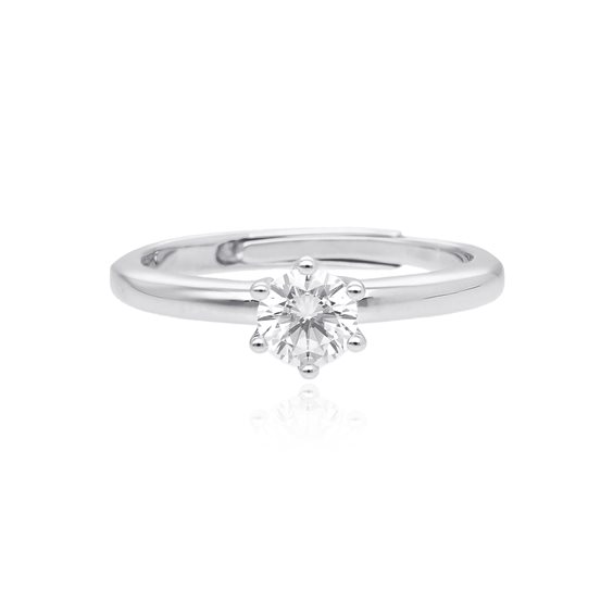 Anello solitario in argento 925 con zircone, misura regolabile, aperto sotto