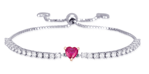 Bracciale in Argento 925/°°°, Zirconi e Rubino Sintetico a Cuore, lunghezza estendibile fino a 22cm.