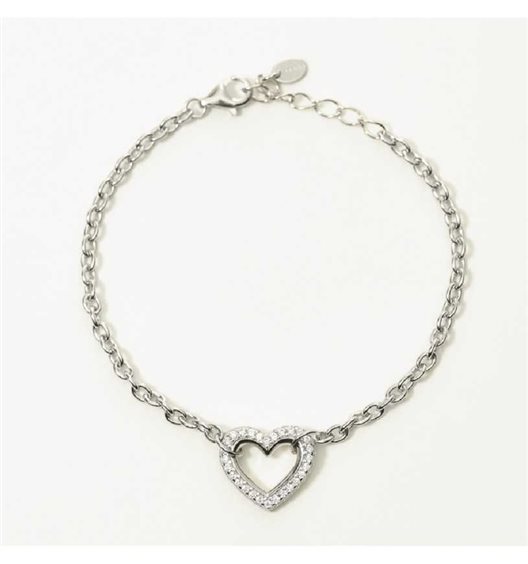 Braccialetto da donna realizzato in argento 925% con catena rolò dallo spessore di 2,9 mm. Elemento centrale a forma di cuore dalle dimensioni di 15 mm x 13,25 mm impreziosito da zirconi bianchi. Lunghezza di 19 cm. Chiusura con moschettone.
