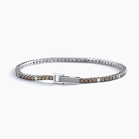 Bracciale argento 925/°°° tennis finitura rodiata, zirconi bianchi e brown Ø 2.50 mm e chiusura a pinza con molla, lunghezza 19 cm.