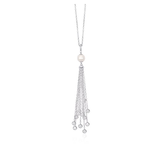 collana in argento 925 con perle coltivate e zirconi.Tutti i gioielli Mabina sono realizzati in materiali ipoallergenici con metodi di lavorazione nel pieno rispetto delle normative italiane ed internazionali vigenti.