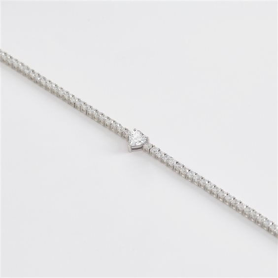 Girocollo in argento 925/°°° con ciondolo cuore 6x6 mm e zirconi bianchi Ø 2.50 mm, lunghezza regolabile da 36 a 41 cm