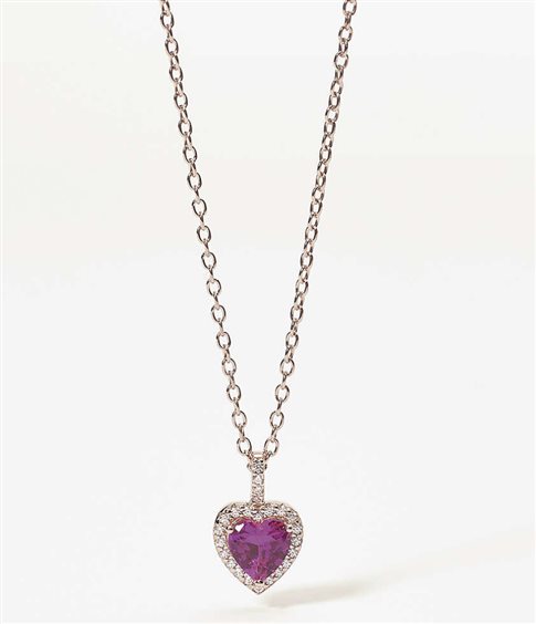 Collana Mabina in argento 925 con pendente cuore con pietra tormalina sintetica e zirconi bianchi. Lunghezza collana 40-45 max