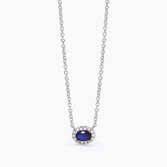 Collana Mabina in argento 925, pendente con pietra ovale blu con contorno di zirconi Lunghezza da 38 a 42 cm
